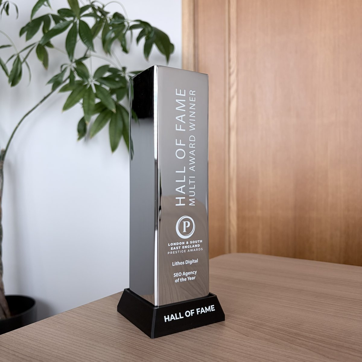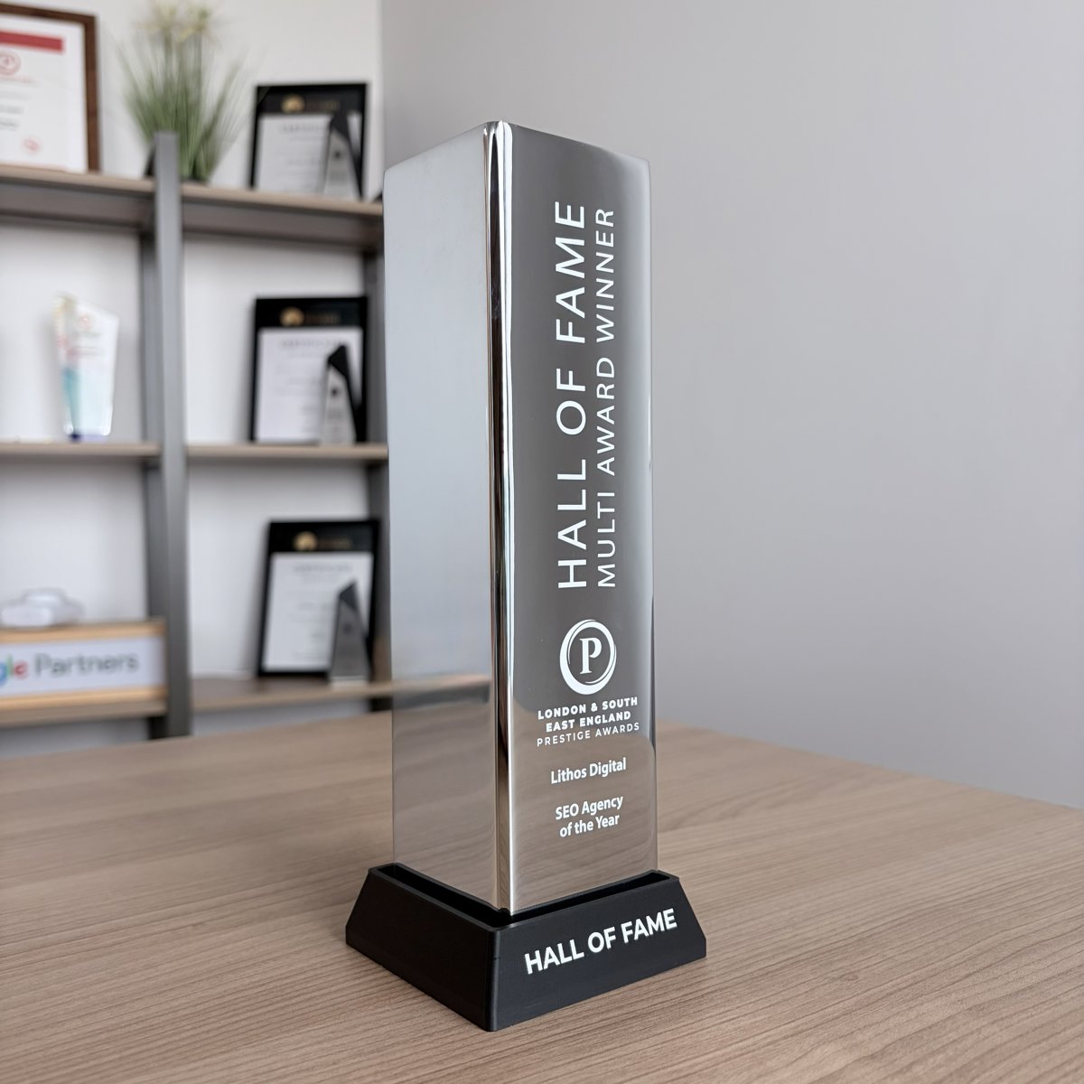 Η Lithos Digital εντάχθηκε πρόσφατα στο Hall of Fame των London & South East England Prestige Awards, λαμβάνοντας για ακόμη μία χρονιά τον τίτλο SEO Agency of the Year. Η αναγνώριση αυτή απονέμεται σε οργανισμούς που έχουν αποδείξει σταθερά την επιτυχία των στρατηγικών τους και παρουσιάζουν εξειδίκευση, συνεχή εξέλιξη και μετρήσιμα αποτελέσματα στην ιδιαίτερα ανταγωνιστική αγορά του Ηνωμένου Βασιλείου.